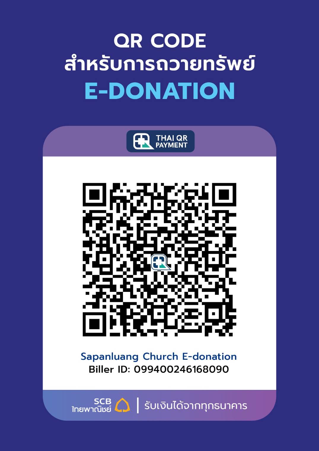 สำหรับท่านที่ต้องการใบเสร็จ กรุณาส่งสลิปการโอนไปที่ Line ID: @SPLChurch พร้อมระบุวัตถุประสงค์การถวาย ชื่อ-นามสุกล ที่อยู่ เบอร์โทร