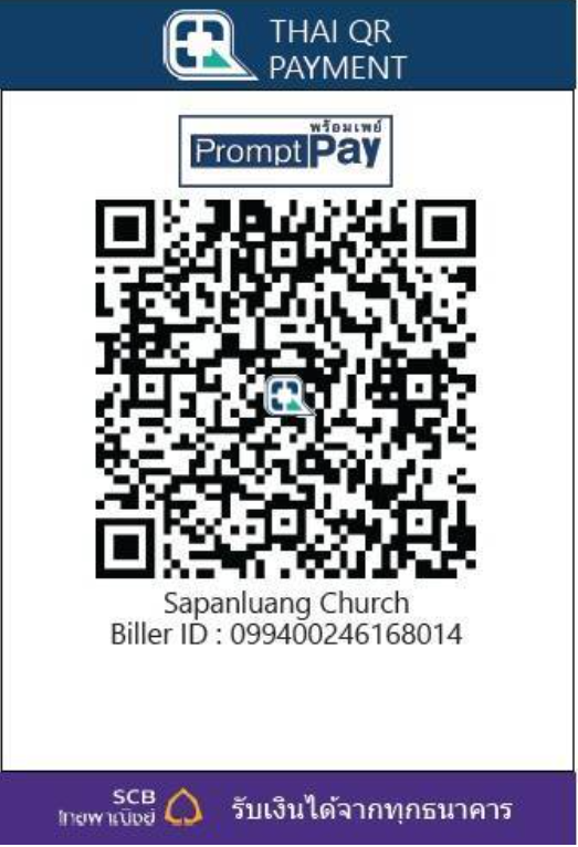 Scan ที่ QR Code ด้านล่างนี้เพื่อถวายทรัพย์ และกรุณาส่งสลิปการโอนไปที่ Line ID: @SPLChurch